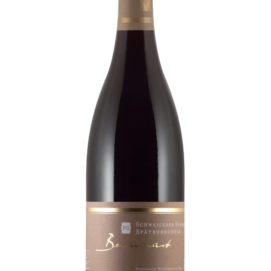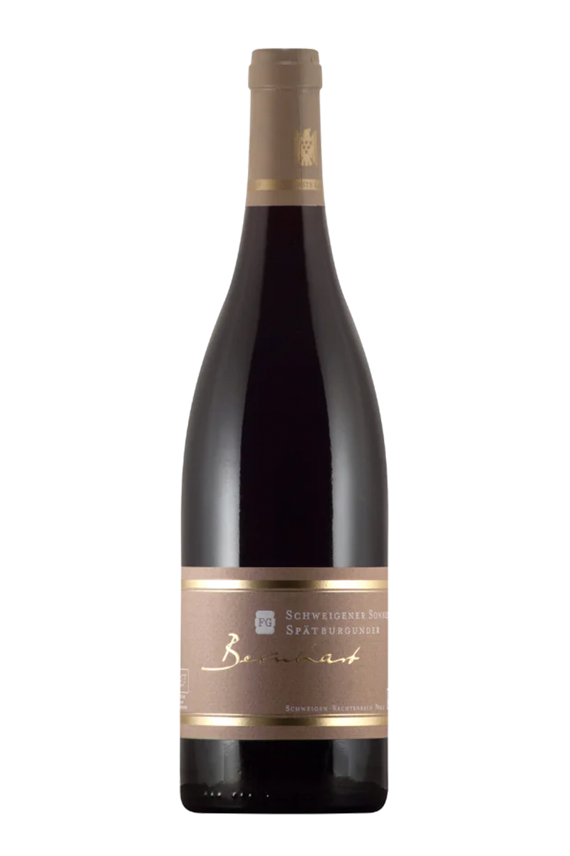 Weingut Bernhart 2019 Schweigener Sonnenberg FG Spätburgunder trocken är ett elegant rödvin med fruktiga nyanser av röda bär och en antydan av vanilj. Vinet har täta, balanserade tanniner och en livlig syra, vilket ger en lång finish. Det har stor lagringspotential och representerar kvaliteten från en VDP.Erste Lage-vinmark.
