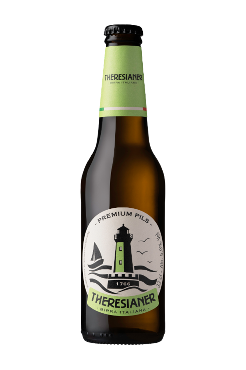 Theresianer Premium Pils är en prisbelönt italiensk pilsner som hyllar den tjeckiska ölstilen med en modern tolkning. Bryggd med tvåradigt kornmalt och aromatiska europeiska humlesorter, erbjuder den en klar halmgul färg, en ihållande skumkrona och en frisk, torr smakprofil med balanserad beska och örtiga toner. Doften är lätt kryddig med inslag av färska örter, medan smaken är elegant och uppfriskande med en lång, behaglig eftersmak. Med en alkoholhalt på 5,0 % och medel kropp, serveras den bäst vid 6–8 °C.