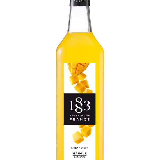 Maison Routin 1883 Mango har en intensiv fruktig arom av färska mogna mangofrukter, Mango 1883 sirap är och har en intensiv, exotisk smak med inslag av apelsin, ananas och persika. Sirapen avslutas med en balanserad syra. Tillverkad av noggrant utvalda ingredienser, inklusive naturligt rörsocker och vår hemliga ingrediens, rent alpvatten.