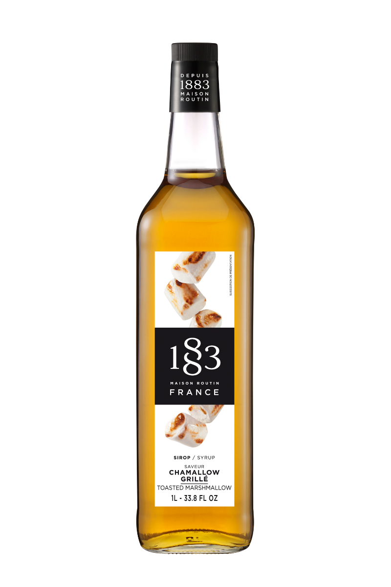 Maison Routin 1883 Marshmallow, med sin härliga doft av nyrostade marshmallow uttrycker Toasted Marshmallow 1883-sirap en fyllig smak av vanilj marshmallow kräm med subtila rostade toner. Toasted Marshmallow 1883-sirap är tillverkad av noggrant utvalda ingredienser, inklusive naturligt rörsocker.